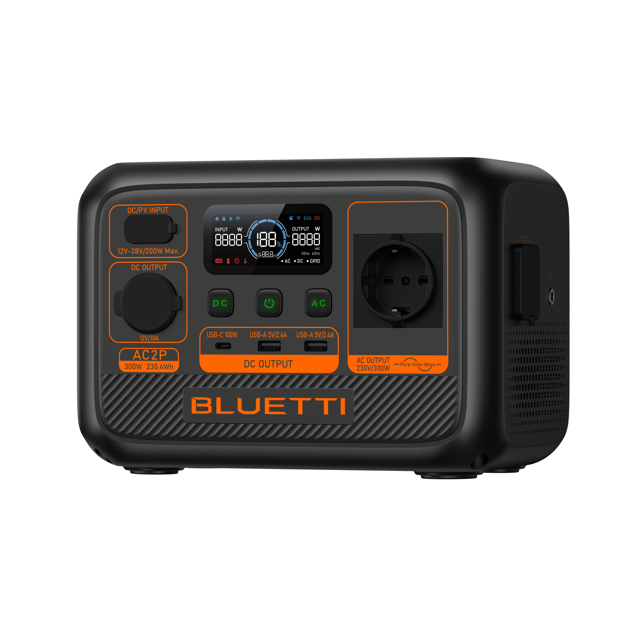 אפשרויות נוספות כוללות טעינה באמצעות כבל הטעינה לרכב 12V או גנרטור. במשקל 3.6 ק”ג בלבד, ה-AC2P קל משקל וקל לנשיאה, כך שתוכל לקבל כוח בכל זמן ובכל מקום.
